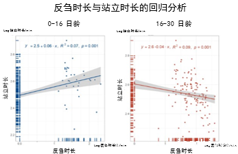 据团队首席科学家屠焰研究员介绍,众所周知反刍行为与瘤胃健康和消化功能息息相关,但很少有人关注犊牛首次反刍行为发生的时间。该研究通过使用红外摄像头观察犊牛的反刍行为,发现“牛奶+精补料”的饲喂模式下,犊牛首次反刍主要集中在15-20日龄,在20日龄以后,反刍时长和站立时长呈负相关,说明犊牛反刍的时间随着静卧休息时间的增长而增加,反刍行为已基本健全。研究结果为优化犊牛饲养管理方式提供了新思路。