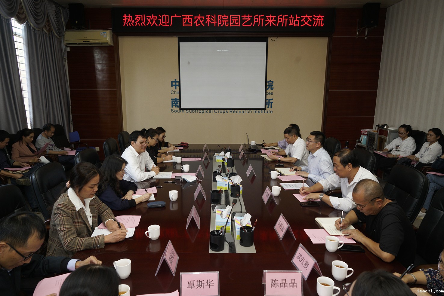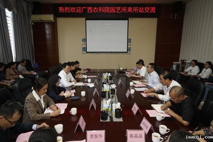 广西农科院园艺所办公室主任吴荣云,科研科科长黄彦妮,何毅研究员,覃斯华研究员,梁桂东研究员等参加了调研,南亚所湛江站菠萝研究中心主任张秀梅研究员,荔枝龙眼研究中心主任石胜友研究员,芒果研究中心武红霞研究员,南亚热带作物种子资源研究室主任陈晶晶副研究员,科技处副处长宋喜梅,办公室副主任马德勇参加了座谈。